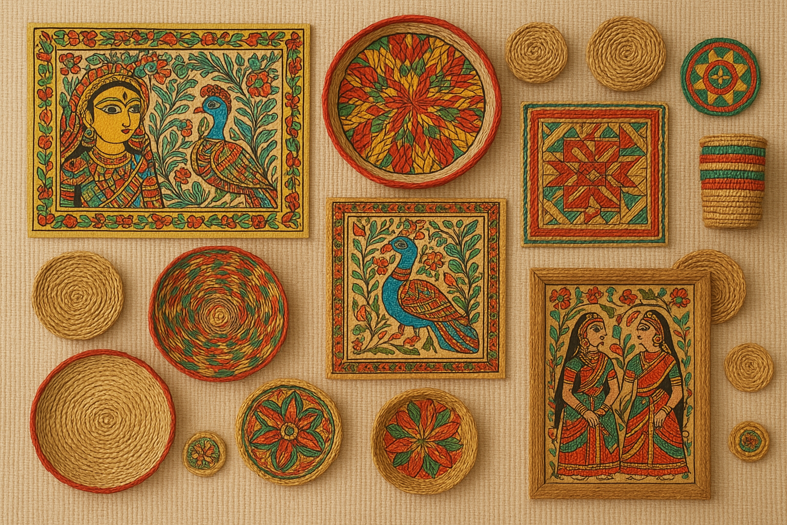 Handcrafted Manjusha Painting Decorative Basket Set – Traditional Folk Art from Bihar