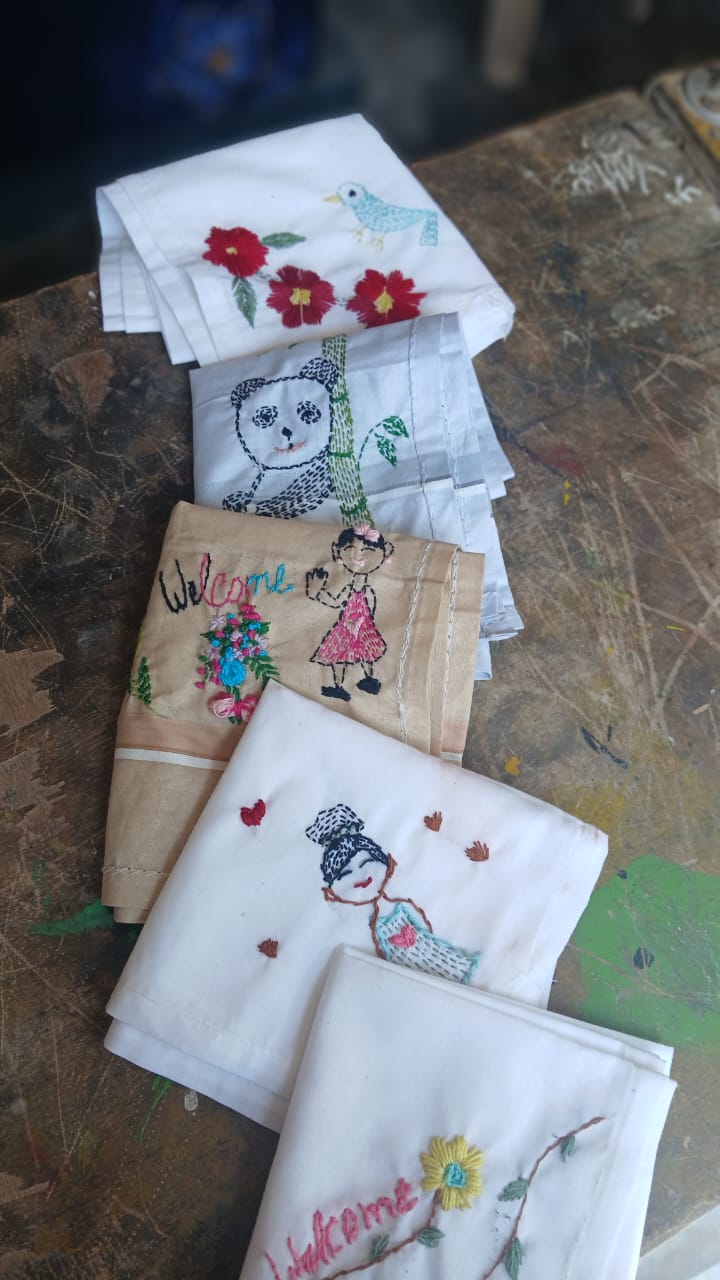 402 Handcrafted Sujini Embroidered Handkerchief Set – Floral & Folk Art Motifs | Bihar Traditional Craft